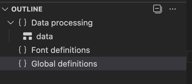 Outline symbols. The VS Code outline panel (and the breadcrumb bar) shows your sections as a navigable tree. Instead of scrolling through the file looking for the right <Record> element, you click on “Data processing” in the outline and jump right there.